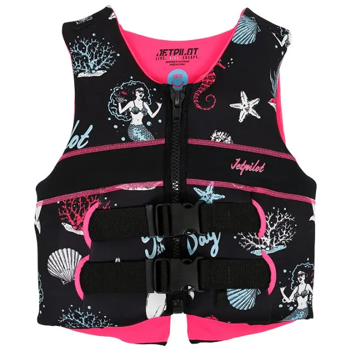 Jetpilot Cause Youth ISO 50N Neo Vest ISO 50N Approved 100% Flex Lite Neoprene Durable YKK Zipper Freelite ISO Flottabilité Mousse Double ceintures de compression internes réglables Fonction Fit. Couleur : Noir/Rose Tailles : 8-10 ANS – 12-14 ANS